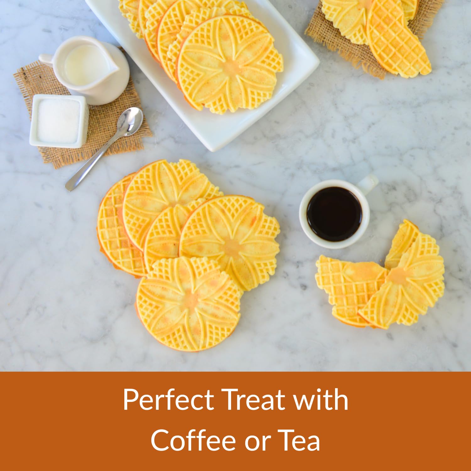 - Enjoy almond waffle cookies as an after-dinner treat with espresso or tea, or use them with your favorite ice cream!