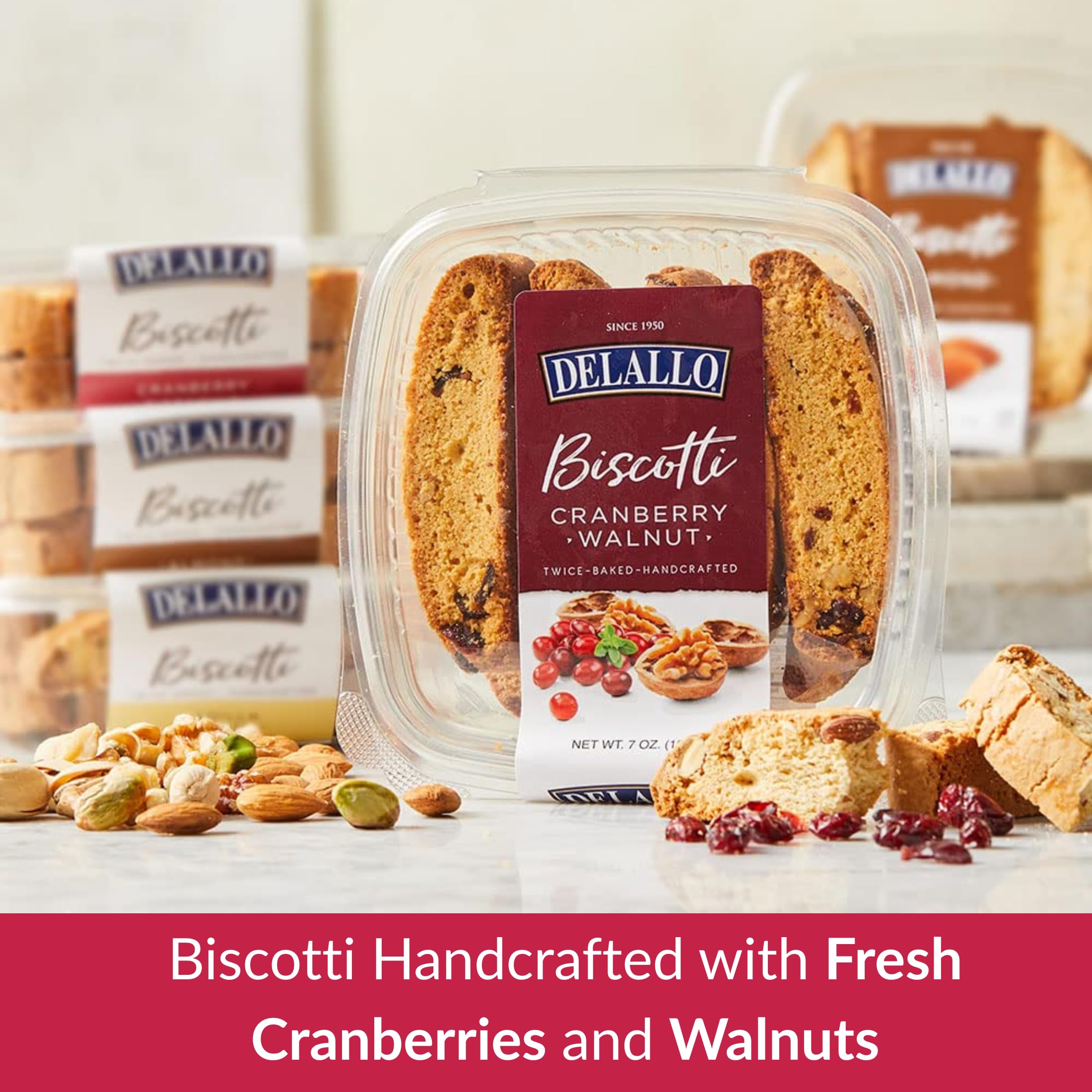 - DeLallo Italian biscotti is handcrafted with fresh cranberries and walnuts giving it the perfect crunch.