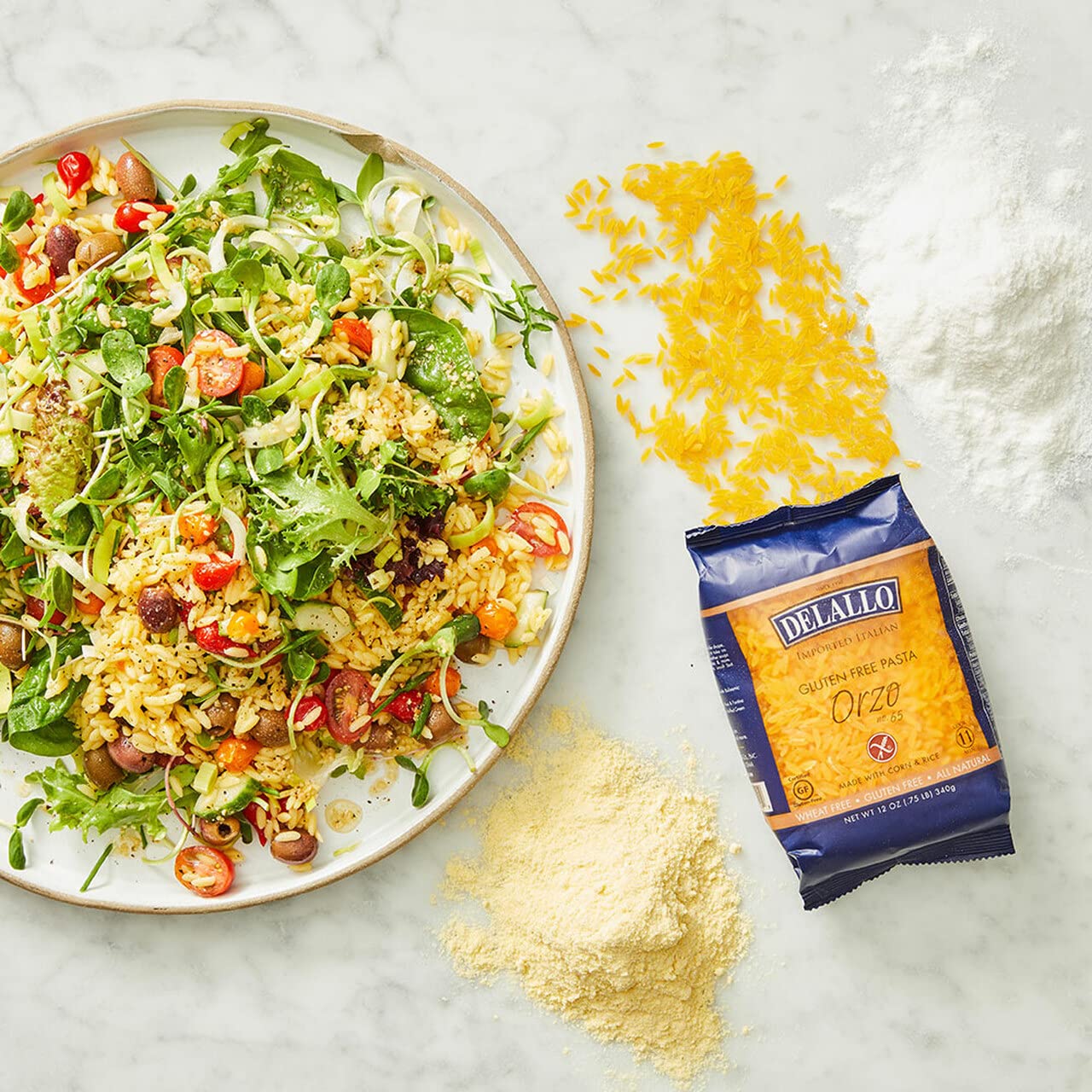 DeLallo Gluten Free Orzo Pasta, Made with Corn & Rice, Wheat Free, 12oz Bag, 12-Pack—