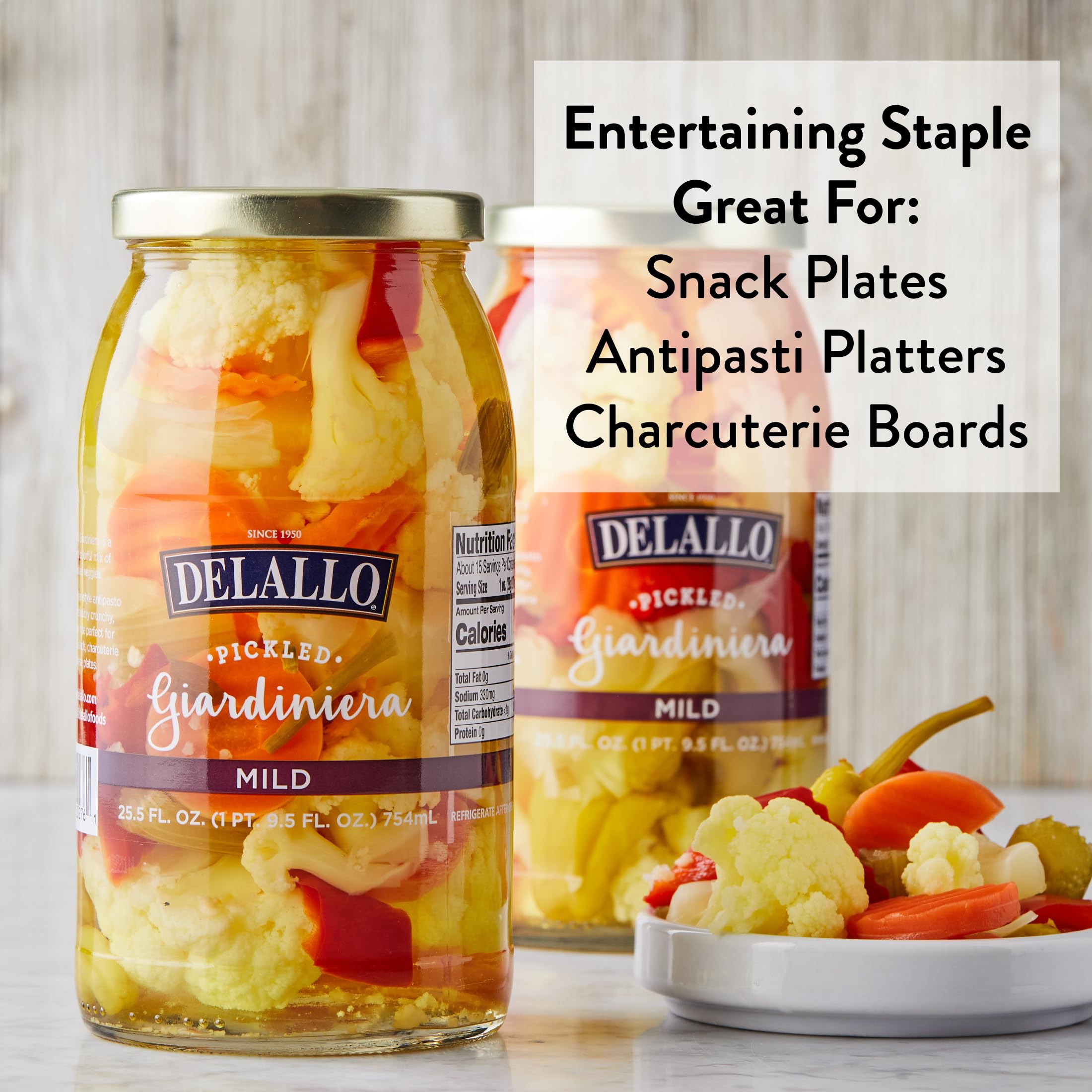 DeLallo Mild Giardiniera, 25.5 Ounce Jar, 3 Pack, Zesty Mixed Vegetable Condiment, 100% Cured, Non-GMO