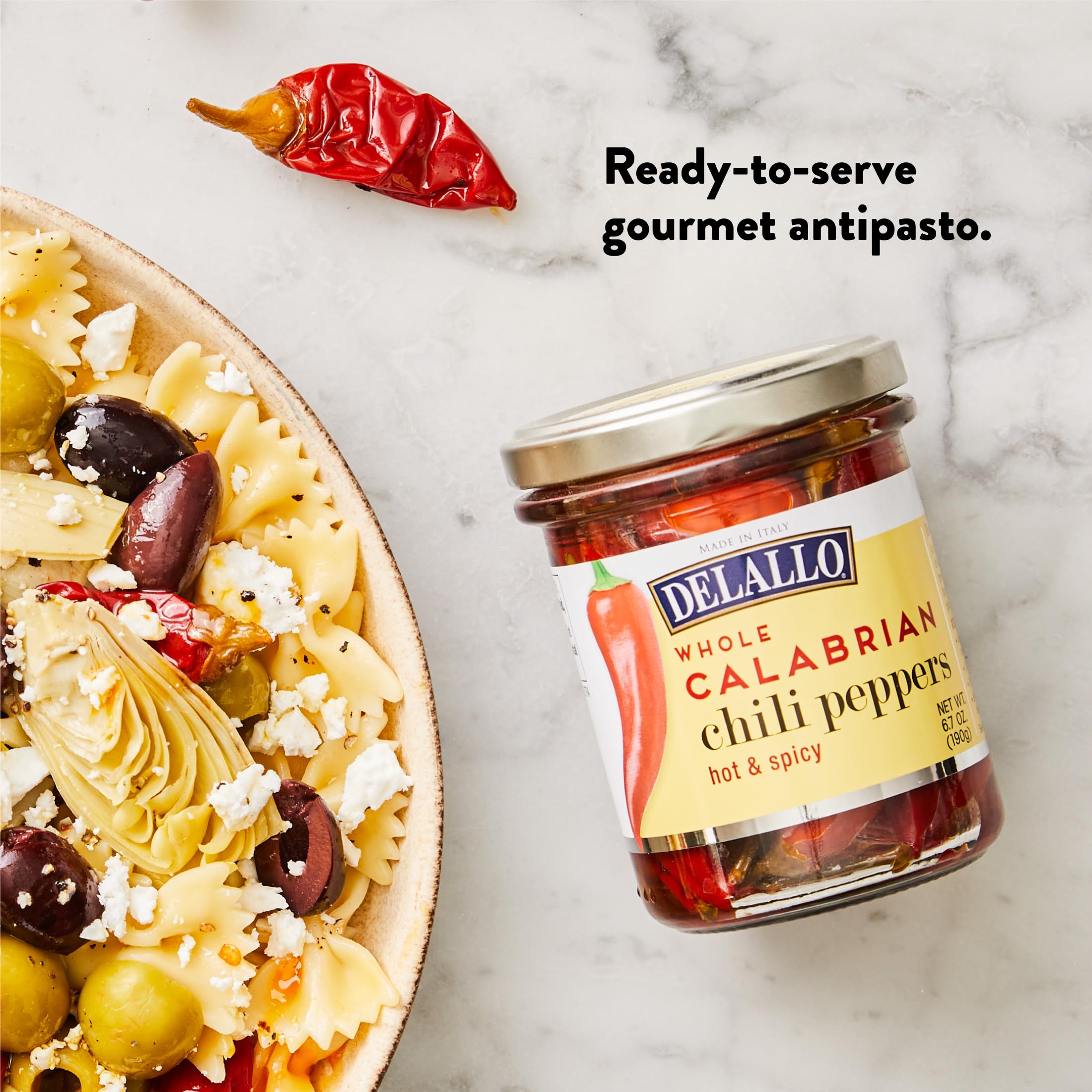 - Grown and harvested in Calabria, Italy, DeLallo Whole Calabrian Chili Peppers are irresistible pickled hot chili peppers packed whole in extra virgin olive oil and vinegar.